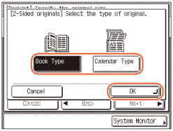 Wybierz żądany typ dwustronnego oryginału → naciśnij [OK].