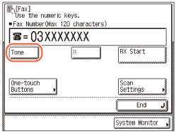 Po naciśnięciu klawisza [Tonowo], na wyświetlaczu dotykowym pojawi się litera <T>.