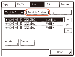 Jeżeli wybrane jest aktualnie odbierane zadanie, na ekranie wyświetlone zostaje [Anuluj].