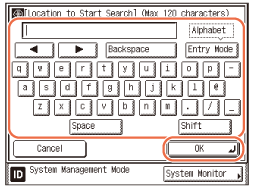 Press [Location to Start Search] → enter the location to start searching → press [OK].