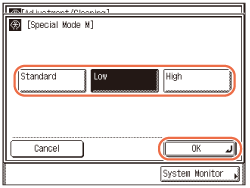 Naciśnij by zapobiec brudzeniu lub zaciekaniu tonera na wydruki w sposób bardziej efektywny niż [MODE1]. Użyj tego trybu jeśli zawiódł [TRYB1].