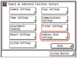 (Funções adicionais) → [Programações livro endereços].![]() Se tiver programado uma password para o Livro de endereços, introduza-a com