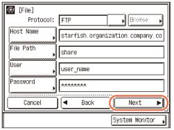 (Iniciar) para enviar documentos para um servidor de ficheiros.(Customizing Settings) Especifique o nome de utilizador e a password → carregue em [OK]./L04059.gif)