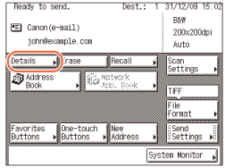 ![]() Se o destino selecionado for um endereço de grupo, selecione um destino de cada vez → carregue em [Detalhes].