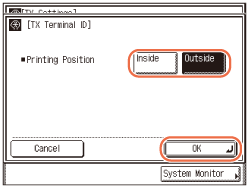A informação do ID do terminal é impressa fora da área da imagem no papel do destinatário.