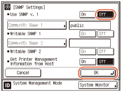 Press [Off] for <Use SNMP v. 1> → [OK].