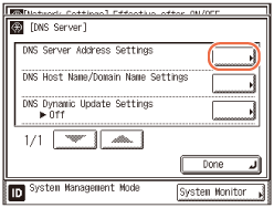 Changes made to DNS Server settings become effective when the machine is restarted. To restart the machine, turn it OFF, wait at least 10 seconds, and then turn it ON. For instructions on how to turn the machine ON and OFF, see Chapter 2, “Before You Start Using the Machine,” in the User’s Guide.