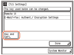 Access the E-mail/I-Fax settings and enable the TLS settings for POP and/or SMTP. (Setting up E-Mail / I-Fax Function)
