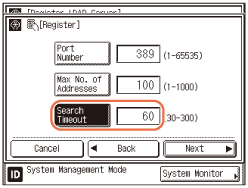 Press [Search Timeout] → enter the timeout time, in seconds, using - (numeric keys).