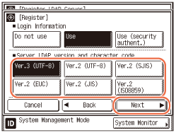 Select the LDAP version and character code according to the LDAP server’s environment → press [Next].