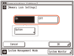 Press [On] for <Memory Lock Time Settings> → press [Next].