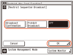 Press [Broadcast Confirmation], [Prohibit Broadcast], or [Off] → [OK].