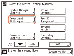 (Additional Functions) → [System Settings] → [Department ID Management].