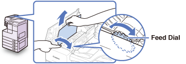 Quando retirar papel encravado do interior da máquina, tenha cuidado para não se cortar nem se ferir nas peças da máquina. Se não conseguir retirar o papel, contacte o revendedor local autorizado da Canon.