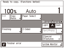 Quando o problema com o finalizador estiver resolvido, desative o Modo Funções limitadas a partir do menu Funções adicionais.(Programar o modo Funções limitadas)