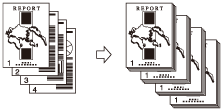 Apăsaţi pentru a micşora automat două sau patru originale care să încapă pe o foaie de copiat pe o faţă sau pe două feţe.