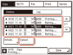 Selectaţi lucrarea pe care doriţi s-o anulaţi → apăsaţi [Anulare].