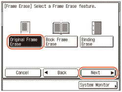 Puteţi seta modurile Ştergere Cadru numai pentru formatele de original indicate pe afişajul panoului tactil.