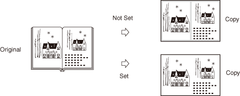 Modul Ştergere legare nu se poate folosi cu modurile Carte la 2-Feţe, Separare pe 2-Pagini, Copiere Card ID, Originale cu Formate Diferite sau Broşură.