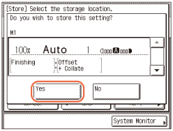 Pentru a anula memorarea setărilor, apăsaţi [Nu].