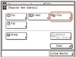 [Grup]: Afişează destinaţiile înregistrate ca adrese de grup. [Fax]: Afişează destinaţiile fax înregistrate. [E-mail]: Afişează destinaţiile e-mail înregistrate. [I-Fax]: Afişează destinaţiile I-fax înregistrate. [Fişier]: Afişează destinaţiile de servere de fişiere înregistrate. |