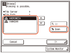 Selectaţi serverul de fişiere dorit → apăsaţi [Jos] sau [OK].