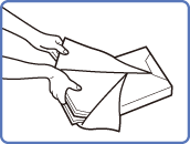 Înainte de a încărca hârtia, aerisiţi întotdeauna foile de mai multe ori şi aliniaţi muchiile pentru a facilita alimentarea.