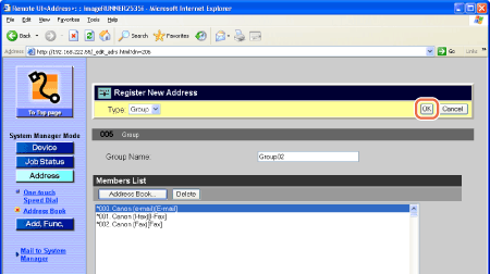 Make sure that the addresses you want to add to the group are displayed in the Members List field → click [OK].