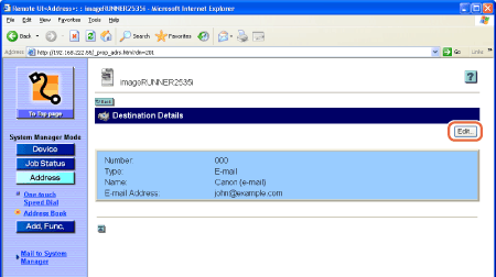 The screen shots and procedures in this section are for the Address Book. The Address Book and One-touch Speed Dial use a similar procedure for editing destinations.