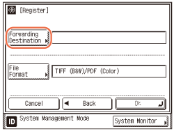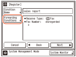 (Additional Functions) → [System Settings] → [Forwarding Settings].