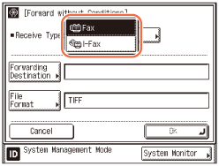 Press the Receive Type drop-down list → select [Fax] or [I-Fax].