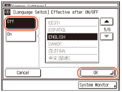 ![]() Jazyk môžete meniť len vtedy, keď je stlačené [Zap.].
