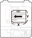 Ak uložíte originály do podávača, ich horizontálny rozmer (X) v smere skenovania sa naskenuje so skutočnými rozmermi originálu, aj keď ručne nastavíte iný formát, ako je formát originálu. Vertikálny rozmer (Y) v smere skenovania sa naskenuje so skutočnými rozmermi originálu nastavenými ručne.