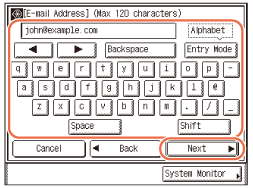 (Štart) na odoslanie e-mailov alebo I-faxov sa zobrazí okno Zadanie sieťového hesla. (Customizing Settings) Špecifikujte meno užívateľa a heslo → stlačte [OK].
