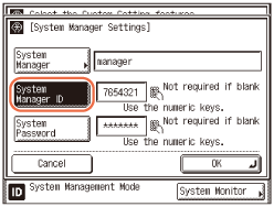 Press [System Manager ID] → enter the System Manager ID.