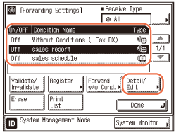 Select the forwarding setting whose details you want to check → press [Detail/Edit].