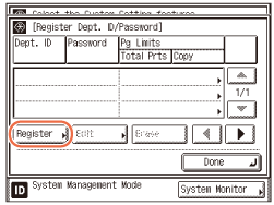 (Additional Functions) → [System Settings] → [Department ID Management].