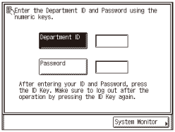 The machine does not accept print jobs that do not correspond with a registered Department ID, and you must enter a Department ID and password to operate the machine.