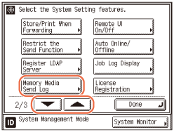 ] until [Memory Media Send Log] appears → press [Memory Media Send Log].