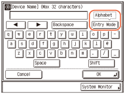 V postopku spodaj uporabljamo kot primer vpisovanja znakov zaslon Ime naprave. (Other System Settings)
