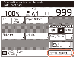 Prikaz na levi je primer zaslona s stanjem funkcije Kopiranje.