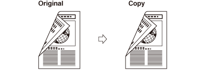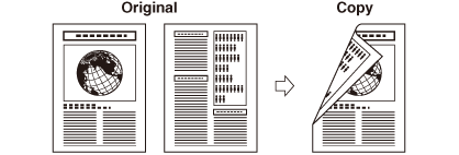 Če uporabljate 1 v 2-stranski način, ko je za kopiranje štiristranskih originalov način 2 na 1 v okviru načina Kombinacija slike nastavljen na 'Da', sta dve strani originala izpisani na eno stran papirja in drugi dve strani na drugo stran originala.