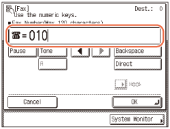 Če je funkcija Potrditev vpisane faks številke v Omejitev funkcije oddajanja nastavljena na 'Da', morate za potrditev še enkrat vpisati faks številko. Vpišite telefaks številko, ki ste jo vpisali v koraku 5 → pritisnite [OK]. (