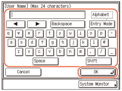 Vpišite svoje uporabniške ime (do 24 znakov) s pomočjo tipkovnice na zaslonu → pritisnite [OK].