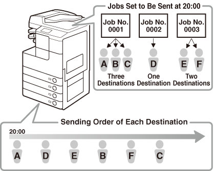 Če hkrati doseže nastavljeni čas oddajanja več postopkov oddajanja, so dokumenti poslani v naslednjem zaporedju: