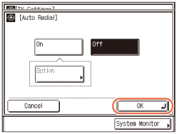S pomočjo tipke [-] ali tipke [+] izberite število ponovnih izbiranj → pritisnite [OK].