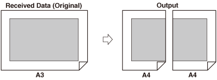 Če izberete [Ne], sprejeti dokument ni avtomatsko pomanjšan glede na velikost papirja. Če velikost sprejetega dokumenta presega območje izpisovanja, bo slika razdeljena v enake dele in vsak del izpisan na poseben list papirja.