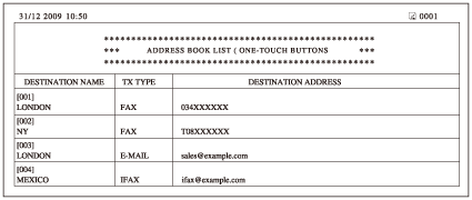 Izpisana sta ime in naslov pošiljatelja ali prejemnika. Če so bili dokumenti poslani na datotečni strežnik (FTP ali SMB), je v drugi vrstici izpisano ime poti.