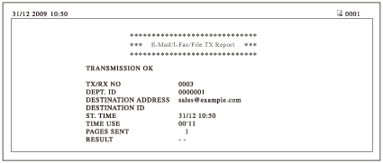 Če se oddaja dokumenta zaključi uspešno, je izpisano "Poročilo o ODD e-pošte/I-faksa/datoteke". Če se pojavi napaka med oddajo, stroj izpiše "POROČILO O NAPAKI PRI ODD e-pošte/I-faksa/datoteke".