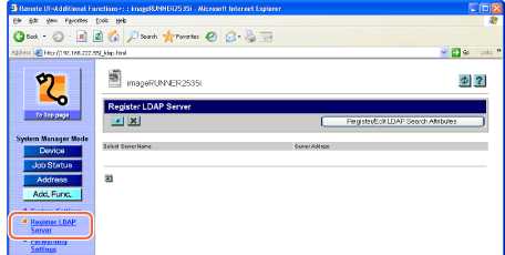 Click [Register/Edit LDAP Search Attributes] on the page shown in step 1.